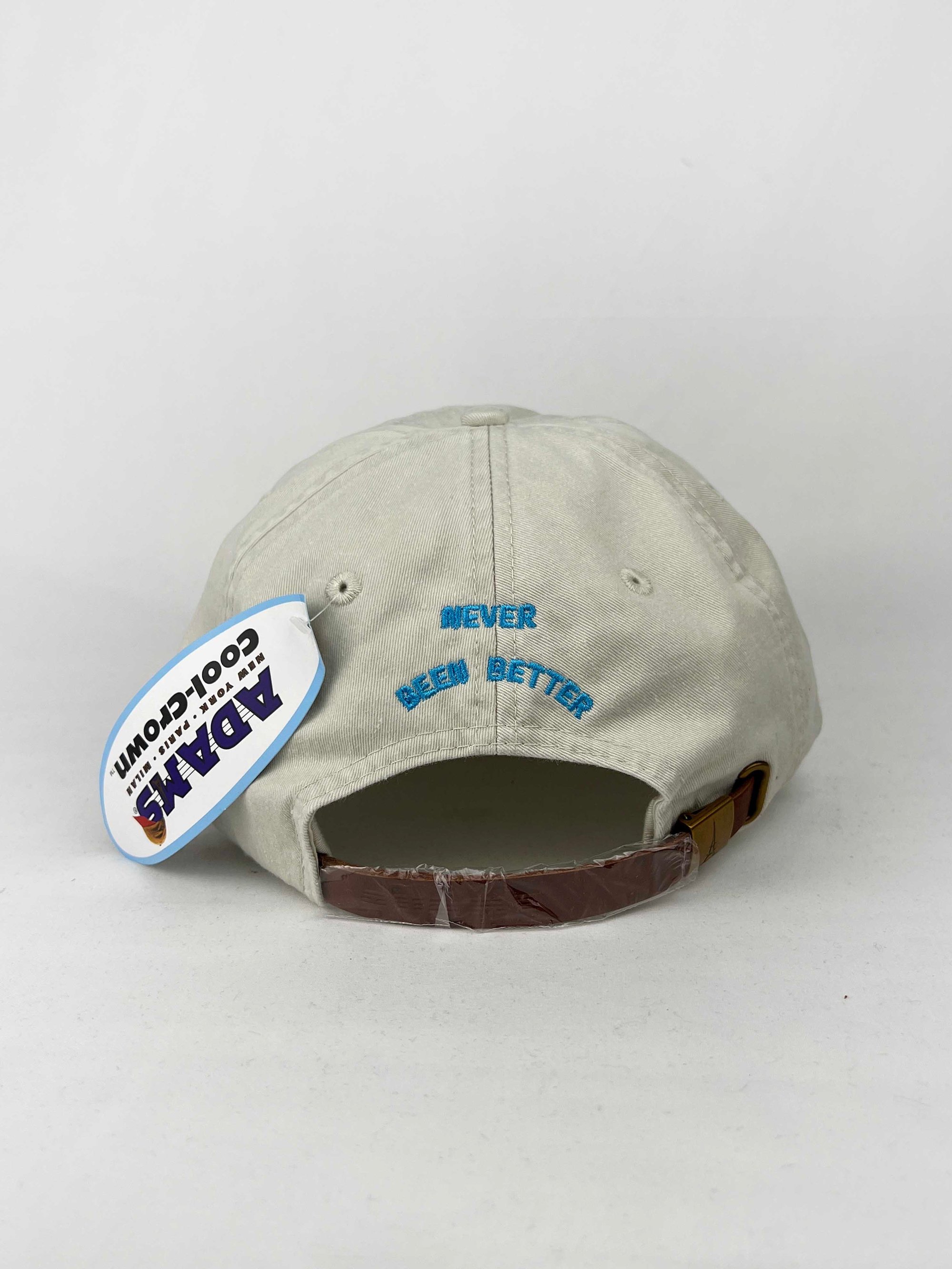 Never Been Worse baseball cap in ivory denim with blue Never Been Worse embroidered on the front and Never Been Better embroidered on the back